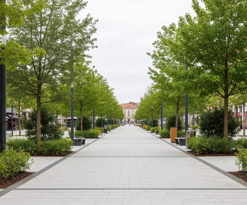 Całość projektu dopełni posadzenie około czterdziestu nowych drzew, które zapewnią cień i estetykę, wpływając pozytywnie na mikroklimat. W ramach inicjatywy zaplanowano również budowę czterech urokliwych pergoli, które zostaną gęsto obsadzone pnączami. Te zielone konstrukcje stworzą zacienione i przyjemne miejsca do odpoczynku, dodając uroku nowej Alei Centralnej i oferując schronienie przed słońcem w upalne dni.