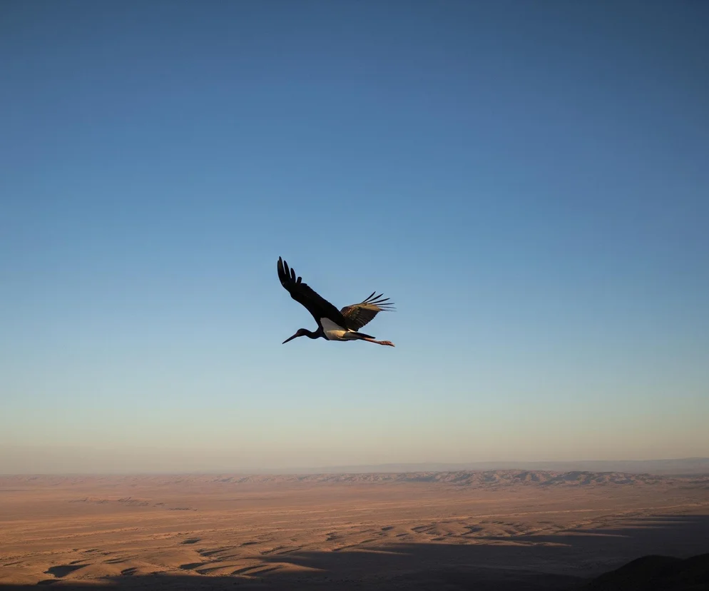 Po pokonaniu Morza Śródziemnego, bocian czarny z Łódzkiego stanął przed kolejnym gigantycznym wyzwaniem, czyli 11-dniowym przelotem nad bezkresnymi piaskami Sahary. W tych ekstremalnych warunkach ptak musiał polegać na naturalnej strategii przetrwania, wykorzystując unoszące się kolumny ciepłego powietrza. Dzięki nim bociany mogą pokonywać tysiące kilometrów, minimalizując zużycie energii poprzez lot szybowcowy.