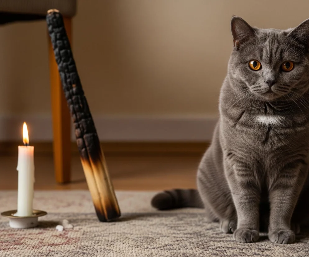 W rezultacie kontaktu ogona z płomieniem, świeca utraciła stabilność i spadła bezpośrednio na pobliskie krzesło. Opisana sytuacja niemal doprowadziła do zapalenia się mebla, a co za tym idzie, do rozprzestrzenienia się ognia w pomieszczeniu. Czujność i natychmiastowa reakcja domowników okazały się kluczowe w opanowaniu rozwijającego się zagrożenia pożarowego.