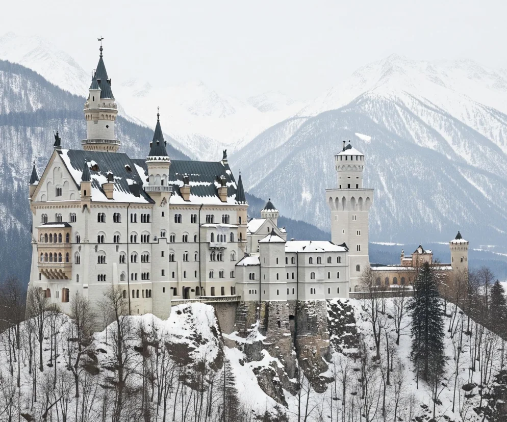 Gdy zima spowija Bawarię, krajobraz zmienia się nie do poznania – ośnieżone stoki, gęste świerki i mgły unoszące się nad dolinami tworzą scenerię jak z najpiękniejszych baśni. W tym malowniczym otoczeniu, na skalistym wzniesieniu, dumnie wznosi się budowla, która z daleka wygląda, jakby specjalnie została tam umieszczona, by zachwycać. Nie bez powodu jej sylwetka stała się jednym z najbardziej rozpoznawalnych symboli baśniowej estetyki na całym świecie, nierozerwalnie łącząc się z popkulturą.
